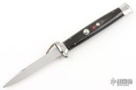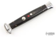 This Vintage Trap Door OTF Auto by C. Jul. Herbertz features a mirror polished blade and a stainless steel handle with buffalo horn scales. Has trap door to cover blade opening. Has safety. Has some light scratches, otherwise excellent condition for its age.