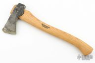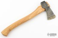 Forged Axe from the Axe Company. 2.625" blade, 6.25" from edge to poll. 15.5" Smedbergs Hickory haft. Has some wax on the blade edge. Comes with a sheath. New from maker.