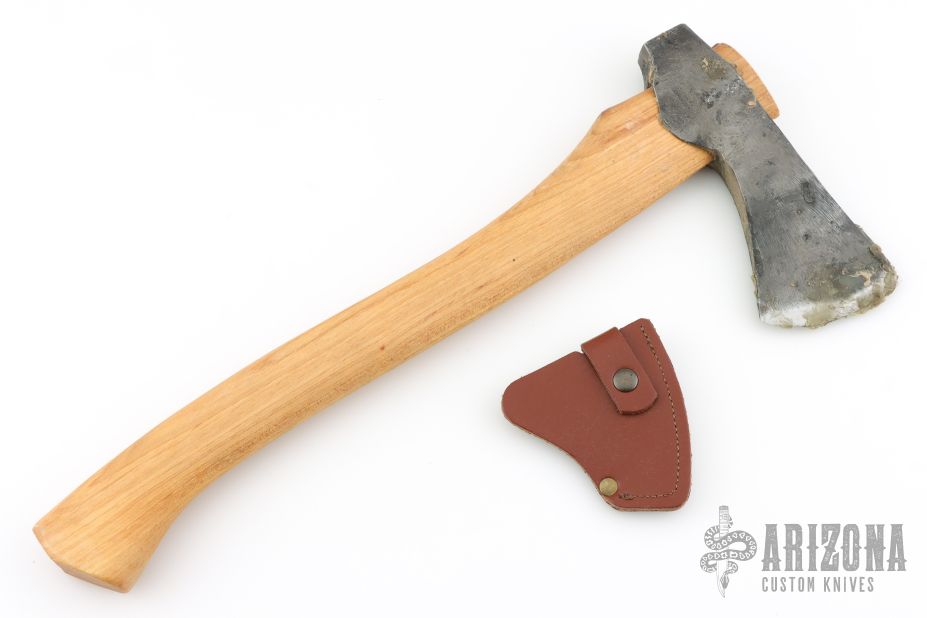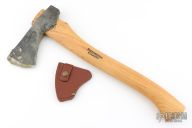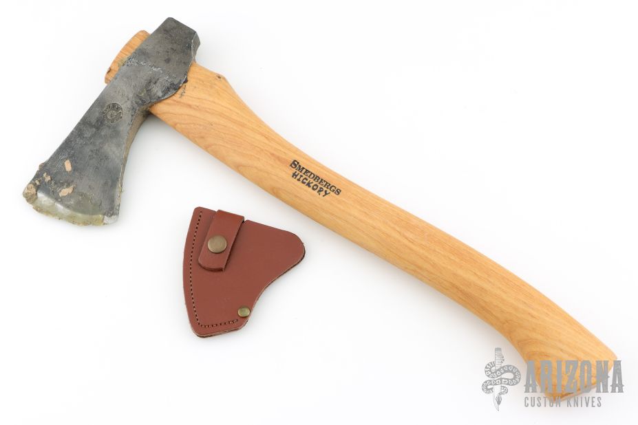 Forged Axe from the Axe Company. 2.625" blade, 6.25" from edge to poll. 15.5" Smedbergs Hickory haft. Has some wax on the blade edge. Comes with a sheath. New from maker.