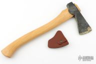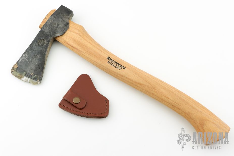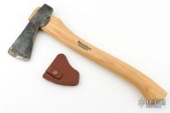 Forged Axe from the Axe Company. 2.625" blade, 6.25" from edge to poll. 15.5" Smedbergs Hickory haft. Has some wax on the blade edge. Comes with a sheath. New from maker.