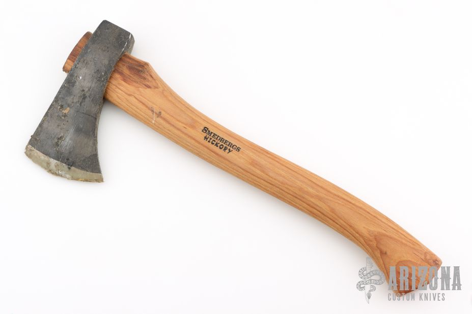 Forged Axe from the Axe Company. 3.25" blade, 6" from edge to poll. 15.5" Smedbergs Hickory haft. Has some wax on the blade edge. New from maker.