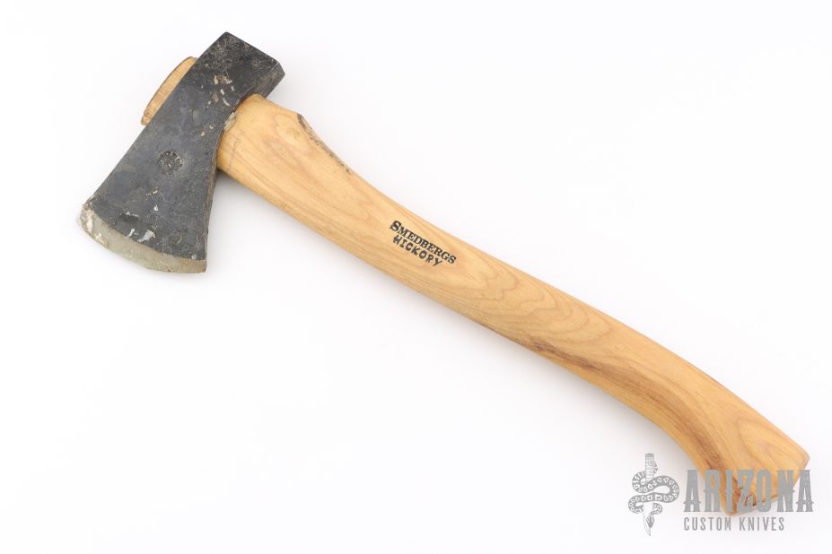 Forged Axe from the Axe Company. 3.25" blade, 6" from edge to poll. 15.5" Smedbergs Hickory haft. Has some wax on the blade edge. New from maker.