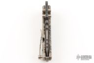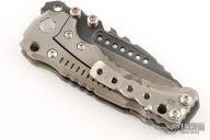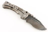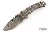 This Custom T-1 Folder by Miller Brothers Blades features a Z-Wear PM recurve blade with fullers, notched thumbrest and dual thumbstuds. The handle has a milled and sculpted titanium frame with matching tip up clip and a steel backspacer. Comes with a pin that can be inserted into the handle when open to lock the blade in the open position. Comes with original Pelican case and COA dated 2020. Excellent condition.