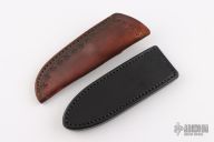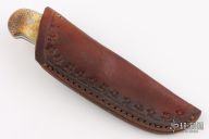 The Triathlete is a non-catalog knife by Randall Made Knives. The knife has satin finished spear point blade with notched thumbrest, .167" blade stock and 1.060" blade depth, full tang construction with custom ground stag scales. Comes with original black leather sheath and brown leather sheath that fits it with the scales. Excellent condition.