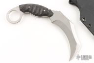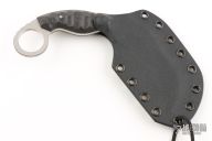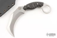 This Ultra Lycan Karambit by Paul McDaniels features a satin finished blade with notched thumbrest and sharpened top edge, .163" blade stock and 1.320" blade depth, full tang construction with carbon fiber scales. Comes with a kydex sheath. Has a couple light scratches, otherwise excellent condition.