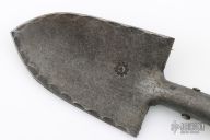 After the initial laser cutting, the shovel head is forged by our own hands from 2.5 mm chrome vanadium spring steel, which is then hardened to a hardness of 55 HRC.