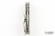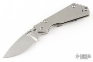 This PT by Mick Strider features a stonewashed blade with notched thumbrest and thumbhole. The handle has a stonewash titanium frame with matching tip up clip. Excellent condition.