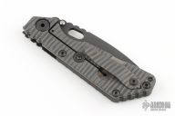 This MS SNG framelock folder by Mick Strider features a black tanto blade and a tire tread G-10 and flamed titanium frame and tip up titanium clip. Includes Hinderer "Lock Bar Stabilizer" for maximum reverse lock retention. Nice detent, lockup and blade seating. Excellent Condition.  Comes with a zippered case. Blade Show 2024 Exclusive.