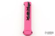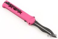 Paragon ATKO 10 T OTF automatic. The blade is black and double edge. The handle has a pink aluminum with a black stainless steel pocket clip, tip down carry. The push button fires the blade and when open, allows you to retract the blade. Sliding safety. Excellent condition.
