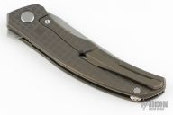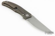 This Quantum MEFP by Shirogorov features a stonewashed Cromax PM blade with notched thumbrest and flipper. The handle has a tumbled and milled titanium frame, backspacer, tip up titanium clip with hidden screws. Rides on SRB, nice detent, lockup and blade seating. Comes with original box and COA. Excellent condition.