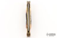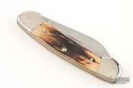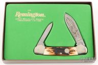 This slipjoint by Remmington has two blades with nail nicks. The handle has nickel silver bolsters, stag covers, brass liners and steel springs. Has a nickel silver escutcheon. Comes with original box and papers. Excellent condition. #355