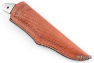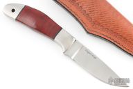 After Russ Kommer makes a new knife, he takes it on the next hunting trip he guides and uses it on the skinning of Alaskan moose, caribou and bear. Our fixed blade hunters survived his field test. That's good enough for us. We've named them after Russ's favorite hunting ranges. Pro Hunters are premium classic hunters with stacked leather handles and full-tang premium 440A stainless steel blades. We add a stainless steel bolster, oversize rings of leather and a stainless butt cap, wedged in place by a stainless steel tube rivet. Finally, the entire handle is hand-finished to achieve the perfect contour. The high hollow ground blade, bolster and butt cap are given a high satin finish, which makes cleaning easier and fights corrosion. Their full-fitted sheaths of 9 oz. shoulder leather feature a classic basket weave pattern.The Chugach Range is the perfect Alaska utility knife, with a simple tear drop handle and modified drop point. Useful for both skinning and caping chores. If we can only take one knife, this is our choice. It's a premium quality knife for serious hunters that you'll cherish and leave to your children.