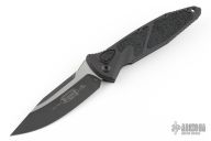 This Socom Elite Auto from Microtech has two toned drop point blade with notched thumbrest. The handle has a black aluminum frame with non-slip rubber inserts and a tip down stainless steel clip, black hardware. Dated 12/2021 and S/N 7593. Includes original box and paperwork. Excellent Condition.