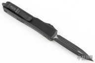 This Ultratech OTF automatic by Microtech Knives features a D/E blade with a standard edge and an all black tactical finish on the blade and handle. Black stainless steel clip. Glass breaker. S/N 208364 and dated 07/2021. Comes with original box and papers. Excellent condition.