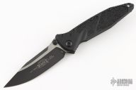 This Socom Elite from Microtech has a black/satin blade with dual thumbstuds and notched thumbrest. The handle has a black aluminum frame with non-slip rubber inserts and a tip down stainless steel clip, black hardware. Dated 09/2022 and S/N 10685. Includes original box and paperwork. Excellent condition.