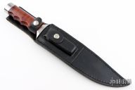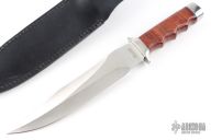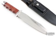 This Boker Magnum Fighter features a satin finished blade with false top edge, .194" blade stock and 1.611" blade depth, hidden tang construction. The handle has a stainless steel guard and butt with a stacked leather grip. Comes with a black leather sheath. Excellent condition.