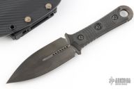 This SBD by Microtech Knives and Borka Blades features a DLC finished double-edged blade with .188" blade stock and 1.556" blade depth, full tang construction with carbon fiber scales. Comes with the original kydex sheath, box and papers, dated 008/2021 s/n 305. Excellent condition.