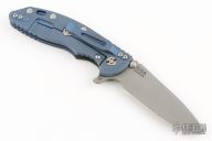 This XM-18 Flipper by Rick Hinderer Knives features a 3.5" working finished blade, notched thumbrest and flipper, dual thumbstuds. The handle has a black G-10 scale, and a battle blue titanium handle and satin finished hardware, and titanium clip. Clip can be mounted for tip up or down carry. Nice lockup, seating, and detent. Comes with original box and extra washers. Excellent condition.