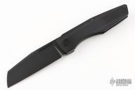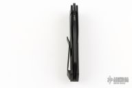 This Axon Second Run Folder by Vero Engineering features a black blade with notched thumbrest and thumbhole. The handle has a milled black titanium frame with a black tip up titanium clip with hidden screws and black titanium backspacer. Rides on bearings, nice detent, lockup and blade seating. Comes with zippered case and COA. #1553. Excellent condition.