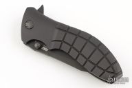 This Kirby Lambert model SNAP flipper features a black recurve blade with dual thumbstuds and a flipper. The handle has a black aluminum frame. Black stainless steel tip up clip. Comes with nylon zippered case and original box and papers. Excellent condition.
