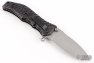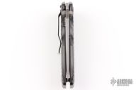 This Gunhammer from HTM Knives features a bead blast finished drop point blade with notched thumbrest and flipper. Machined "Tornado" black aluminum frame, tip down black stainless steel clip. Notched thumbrest. Comes with original box, papers, and zipper case. Has a couple light scuffs, excellent condition otherwise.
