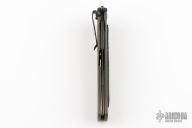 This Madd Maxx 5.5" Assisted Flipper is a Darrel Ralph Design executed by HTM Knifes. It features a black coated bayonet ground blade with false top edge, fullers, dual thumb studs and flipper. The handle is comprised of a carved bead blast and acid/tumble titanium frame with carbon fiber overlay over DLC barrel spacers. Black coated steel tip down clip and lanyard hole in pommel. Includes original box, papers, and padded zipper case. Has some light scuffs and scratches, excellent condition otherwise.