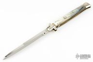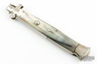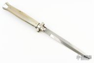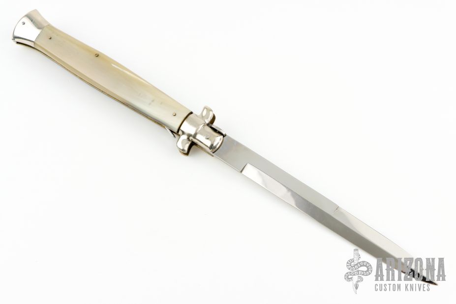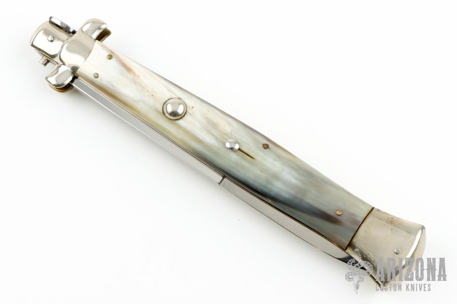 Angelo Campolin Sr. was born in 1923 in Maniago, Italy. He worked on perfecting his knife making skills before WWII and at this time made his first switchblades. After the war, in 1947 he started his company and made 30 stilettos with the marking “Angelo Campolin”. In the 1970’s Angelo’s son Gianni started to work in the company and they were specializing in folding hunting knives and also manual folding stilettos for the Robert Klaas company in Solingen Germany with their Kissing Cranes mark. In 2002 American switchblade collectors Dan Fuller, Brad West, and Tim Zinser were visiting Maniago and enjoying a few glasses of wine in a bar with Angelo Jr. and Gianni. The discussion was about a new name for some knife projects they wanted to pursue. It was Brad West that suggested the tang stamp should be AGA, for Angelo, Gianni, Angelo, thus representing three generations in the knife making business. The Campolins liked it and it stuck. In the beginning it was just a few items, but grew to the point where now there are 12 models and different scale options. The goal has been to offer quality switchblades using the old methods and traditions. Being a collector himself, Angelo Jr. knows what others like. The company headquarters has moved to Austria with production still in the original Maniago shop, as well as the others in Maniago that produce the knives for A.G.A. Campolin.