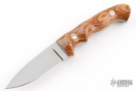 This Hunter by Jim Minnick features a mirror finished blade with .183" blade stock and 1.012" blade depth, full tapered tang construction. The handle has dymondwood scales and nickel silver pins. Has a couple light scratches, otherwise excellent condition. MI-020 on the blade