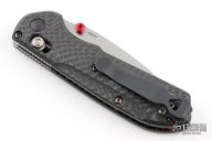 The Benchmade 565-1 Mini Freek is a luxury model of the already popular 565. It features a milled carbon fiber handle with true red barrel spacers and thumb studs. It uses Benchmade's famous AXIS Lock and includes a reversible pocket clip, making it truly ambidextrous. The blade is made of premium CPM-S90V stainless steel. Features: CPM-S90V blade steel offers great edge retention and wear resistance. Carbon Fiber handle scales are strong and ultra-light. Fully ambidextrous setup with dual thumb studs, reversible pocket clip, and AXIS® lock mechanism. Comes with original box and papers. Comes with Excellent condition. Comes fitted with a black titanium LynchNW deep carry clip. Comes with two black stainless steel Benchmade clips as well.