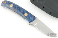 This K-14 by Dozier knives has a satin finished drop point blade with full tang construction. .121" blade depth and .834" blade stock. Has dyed and stabilized maple burl scales with brass pins and lanyard hole. Comes with a kydex sheath. Excellent condition.
