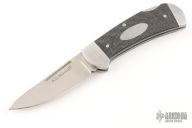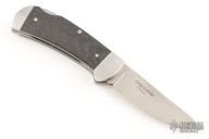 The A.G. Russell Vest Pocket Semi-Skinner lockback is our newest example of A.G.'s use of this blade. He chose a top grade blade steel, CPM-S35VN at 60-61 Rc., and a visually striking carbon fiber for the handle scales. The bolsters, liners and inlay are stainless steel. This knife was engineered and ordered before A.G. passed away in October 2018. The plan was to create a small, thin, lightweight lockback folder that could be carried comfortably in the pocket, including a vest or jacket pocket. At only 3-1⁄8" closed with a handle thickness, at the thickest point, of about 3⁄8" and weighing only 2.5 oz. A.G. hit his mark. It will certainly feel comfortable being carried in any pocket you choose. Made in China.