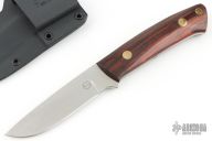 This K-22 Buffalo River Hunter by Dozier Knives features a satin finished blade with .133" blade stock and .906" blade depth, full tang construction. The handle has cocobolo scales with brass pins and lanyard hole. Comes with kydex sheath with belt clip. Excellent condition.