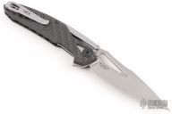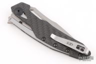 This ZT is reliably strong thanks to its steel construction. Other elements pay homage to the original 0999, including an exposed “floating bridge” near the top of the handle, carbon fiber scales with a front steel overlay, and cutout windows in the blade and near the pivot. Instead of a ZT logo on the blade itself, the words “Zero Tolerance” are subtly embossed into the backspacer. The CPM-20CV blade offers excellent edge retention and opens reliably with KVT ball bearings. Includes the original box and papers. Ser 3445. Excellent Condition.