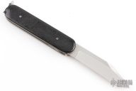 This Switch Army Switchblade by Chuck Gedraitis features a satin finished blade with false top edge. The handle has Vintage black rag micarta scales, orange peel finished titanium liners and backspacer with lanyard hole. Has tweezers and toothpick like a Swiss Army Knife. Nice action, lockup and blade seating. Comes with a zippered case. Has a couple very light scratches, otherwise excellent condition. Comes with COA and a beaded lanyard.