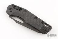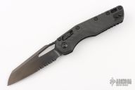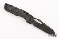 This MSI by Microtech features a black DLC stonewashed partially serrated blade, thumbhole and notched thumbrest. The handle has carbon fiber scales, black DLC  hardware, backspacer and tip up reversible clip. Comes with original box and papers. Excellent condition. Dated 09/2023