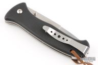This SERE 2000 Linerlock Folder by Al Mar has a satin finished spear point blade with dual thumb studs. Handle is black G10 over stainless steel liners, and lanyard hole. Has a couple light scuffs, excellent condition.