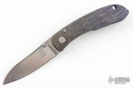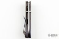 This Mini Daws linerlock folder by Brad Southard features a satin finished blade with dual thumbstuds. The handle has a textured and anodized titanium frame, matching titanium locking liner, stonewashed titanium backspacer, anodized titanium tip up clip. Smooth action. Nice blade seating, detent, and lockup. Has a couple light scuffs, otherwise excellent condition. Made roughly 2015