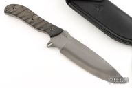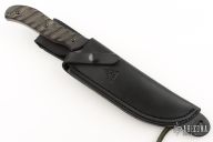 The Silent Hero was designed by Anton Du Plessis, who at the time of the design was the Chief of Operations for the Specialized Interdiction Unit of the Silent Heroes Foundation. His task was to combat the poaching crisis in South Africa. This knife had to be durable, versatile, and able to fill Anton's needs in the field, which affected the design of the blade and the handle. It will definitely hold up to hard use. And with a weight of only 12 oz, you'll be able to use the knife without getting fatigued too quickly. There is a lanyard hole in the handle along with another in the finger guard. This is meant to allow the user to add a safety cord in order to improve the grip on the handle, which already allows for a solid grip. The finger-guard hole can also be used to assist in lashing to a spear when the situation warrants it. There is a finger choil up into the blade to give you the ability to choke up and execute precise, fine cuts. The drop point design makes this knife great for slicing and gives the tip extra strength. So this knife will be a great knife for bushcraft, survival, and tactical purposes. The black leather sheath is durable and looks great paired with this knife. The Silent Hero is held in place with a single snap loop that curls around the finger guard. The Silent Hero is a great design and a very versatile blade. It is large enough that it can be used to chop but is also still small enough to complete most of the tasks you can do or want to do with a smaller knife. Comes with original sheath. Excellent condition.