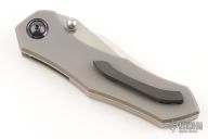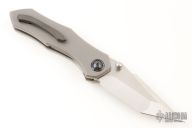 This Neutron Star by GoodSkrew features a satin finished blade with dual thumbstuds and notched thumbrest. The handle has a stonewashed titanium frame with zircuti pivot collars, titanium backspacer and a zirconium tip up clip with hidden screws. Inlaid titanium locking liner. Comes with original box. Excellent condition.