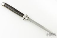 This 13" Swivel Bolster features a polished flat ground blade. The handle has stainless steel bolsters, front and rear, buffalo horn scales, brass liners, stainless spring. Has some light scratches, otherwise excellent condition.