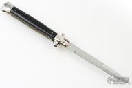 This 11" Picklock features a tumbled blade with false top edge. The handle has stainless steel bolsters, front and rear, acrylic scales, brass liners, stainless spring. Has a few light scratches, otherwise excellent condition.