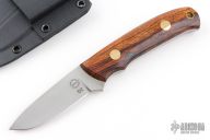 This K-14 by Dozier knives has a satin finished drop point blade with full tang construction, .130" blade depth and .835" blade stock. Has desert ironwood scales with brass pins and lanyard hole. Comes with a kydex sheath. New from maker.