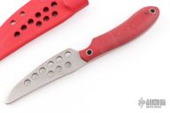 This Disciple Trainer by Trace Rinaldi and ShivWorks features a trainer blade with red G-10 scales. Comes with kydex sheath with TekLok. Excellent condition.