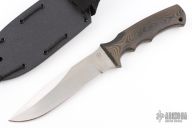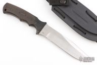 This knife features a satin finished clip point blade with a sharpened top edge and a hidden tang construction.  .205" Blade Stock.  1.317" Blade Depth.  Micarta Grip.  Includes a black kydex sheath.  Has a few light scuffs/scratches otherwise the knife is in excellent condition.  Very Rare!