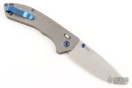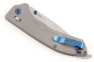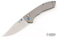 Featuring a milled titanium handle, the Narrows is as comfortable as it is lightweight. Measuring just over 4.5 inches long, your hand feels in control and never crowded as you set the Narrows to work. The vibrant blue anodized thumb studs, pocket clip, and hardware add a beautiful style to the pocket knife you'll treasure for a lifetime.