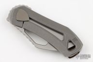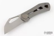 This is the OK Knife from CKF! This is a folding knife that does not have a lock. It has a M398 Chisel Ground CKF wash blade that rides on bearings. One side of the handle is tumbled titanium and the other side has a large pocket clip that acts as a scale.