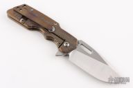 This Mark 1 Flipper by A2D Mercantile features a satin finish blade with thumbhole and flipper. The handle has a bead blast finish titanium frame with laser engraved anodized finish and, satin anodized titanium tip up clip. Nice detent, lockup and blade seating. Comes with a zipper case. Has a couple light scuffs and scratches, excellent condition otherwise.