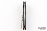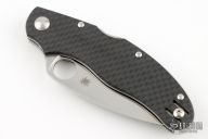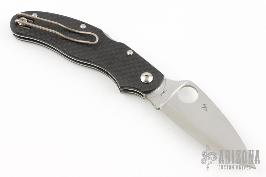 This Caly 3 features a satin finished 420J2 Steel with ZDP-189 core blade with a thumb-hole and notched thumb and index finger rests. The handle has carbon fiber scales, and stainless steel liners, back-spacer and pocket clip. Clip is tip up and is right or left handed reversible. Comes with original box. Has a couple light scuffs, excellent condition otherwise.