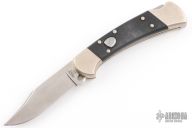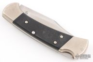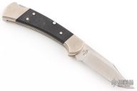 This Buck 112 Auto features a satin finished clip point blade. The handle has a nickel silver frame with black G-10 scales. Has scuffs and scratches but would make a good user.