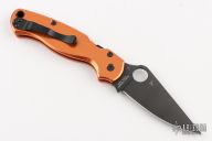 This Paramilitary 2 has a spyderco tip up clip and orange aluminum AWT scales. Does not come with anything. Has a couple light scuffs, excellent condition.